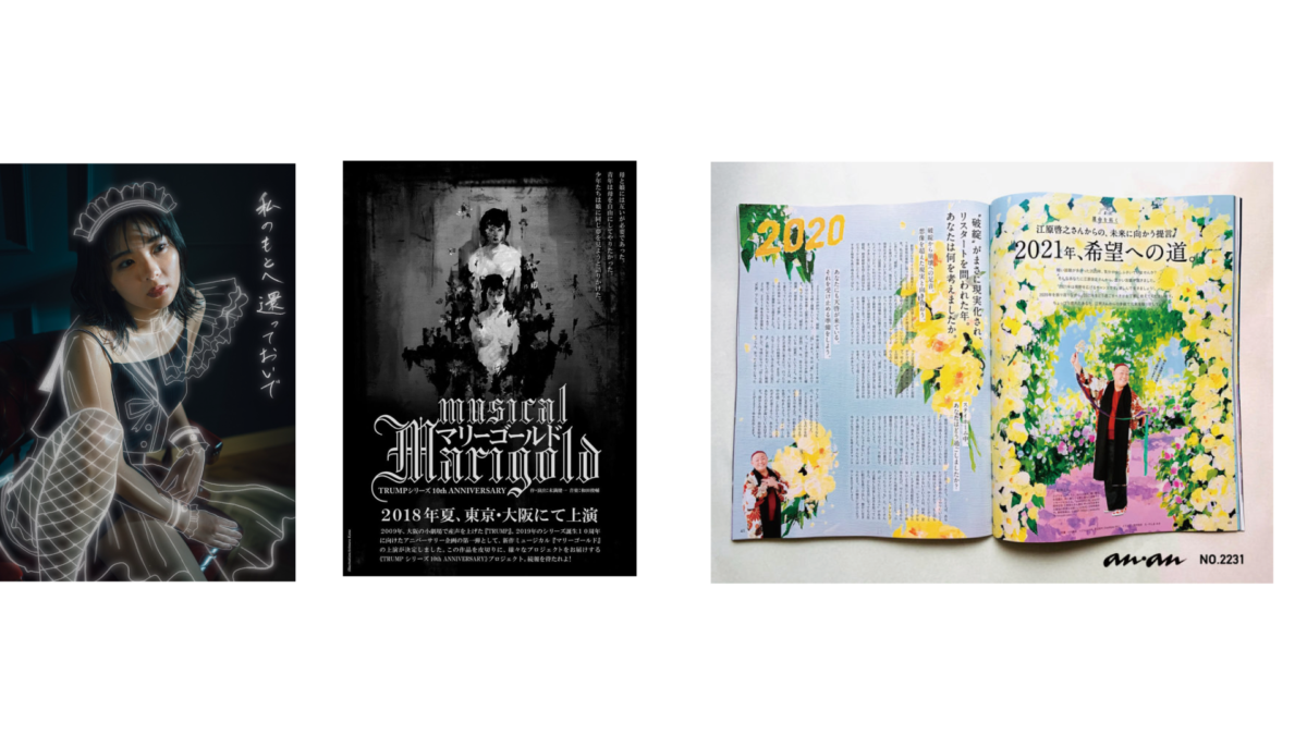 書籍装画を中心としたイラストレーションの仕事も行っており、『祝祭のハングマン』(著・中山七里|文藝春秋)、『御伽の国のみくる』(著・モモコグミカンパニー|河出書房新社)などを担当している。